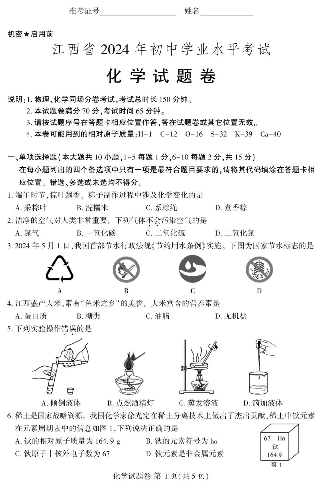 江西中考為大家?guī)?024年江西中考真題化學(xué)的詳細(xì)講解,希望能幫助大家順利備考哦。預(yù)祝大家考試成功哦。