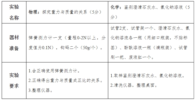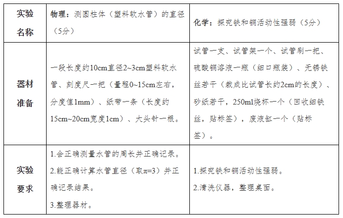 新余市2025年初中學業水平考試(中考)實驗操作考試
