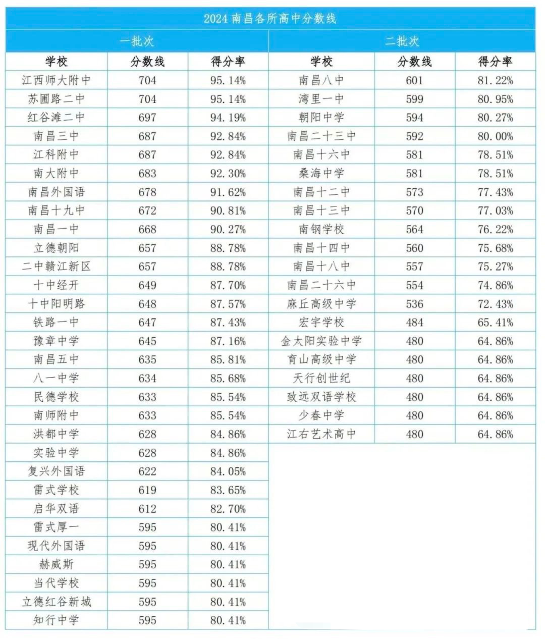 2025年南昌中考成績公布,附24年分數線匯總!