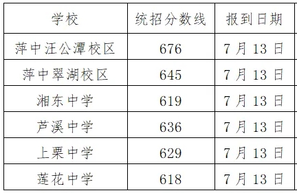 2.萍鄉(xiāng)中學(xué)翠湖校區(qū)均衡招生錄取控制分?jǐn)?shù)線為620分。已完成下達(dá)均衡招生計(jì)劃的初中學(xué)校均衡招生錄取分?jǐn)?shù)線為621分。考生可在畢業(yè)學(xué)校或中招平臺查詢錄取結(jié)果。